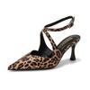 Sandalen Damen Sommer Oberbekleidung 2025 neu Taschenkopf halber Pantoffel spitze Zehenpartie dünner Absatz hoher Absatz Kätzchen- und Leopardenmuster einzelne Schuhe