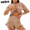 GMXIA Sommer Kurzarm Shorts Zweiteiliger Loungewear Anzug Damen Locker Bequem