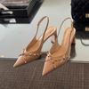 2025 neues Design spitze Zehenpartie wunderschönes weiches Leder Temperament Weiß High Heels dicker Absatz Nude Nietenschuhe