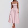 Neue Sommerprodukte Reines Temperament Karomuster Brust eng Hohe Taille Großer Rocksaum Trägerkleid