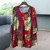 Women's Plus Size Printed blouse Summer Ice Silk blouse Loose Half-Sleeve T-Shirt