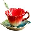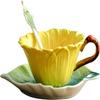 Sonnenblume 3D Keramik Kaffeebecher und Untertasse Set mit Löffel - Vintage Floral Teetasse mit dekorativem Henkel - Einzigartiges Geburtstags-, Hochz