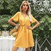 Summer yellow polka dot skirt short waist slim v-neck dress