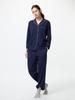 - Pajama design consisting of an open collar long sleeve top and long length pants.