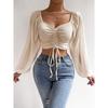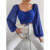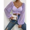 Sommer Neu V-Ausschnitt Chiffon Kordelzug Laternenärmel Enganliegend Mode Sexy Hemd Top