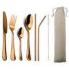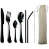 4-teiliges blaues Geschirr mit 2-teiligem Metallstrohhalm Edelstahl Buntes Besteck Messer Gabel Teelöffel Silberwaren Besteck