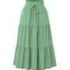 Damenmode, einfarbig, Blumenmuster, Kordelzug, elastische Taille, lockerer langer Rock