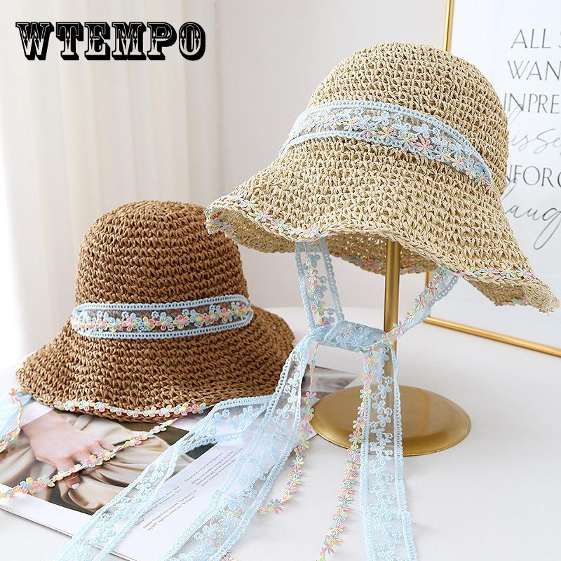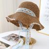 Lace Lafite Damen Strohhut Frühling und Sommer Sonnenschutz Reise Hut mit breiter Krempe Bucket Hat Strand Meer Sonnenhut