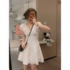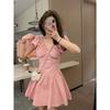 Kleid mit Puffärmeln und V-Ausschnitt Damen Sommer Französisch Süß und Würzig Taille Tüllrock Kurzarmrock