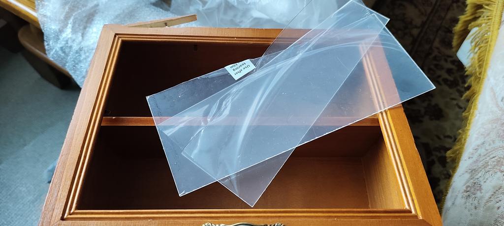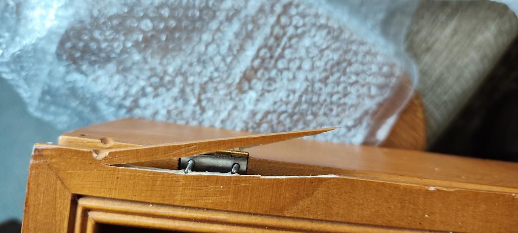 Der Artikel kam vollständig zerbrochen an. Sowohl das Plastikfenster als auch die Holztür sind gebrochen. ☹️
