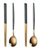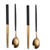 4-teiliges Haushalts-Besteckset Schwarzgold Essstäbchen Löffel Grün Gold Edelstahl Geschirrset Luxus Geschirrset