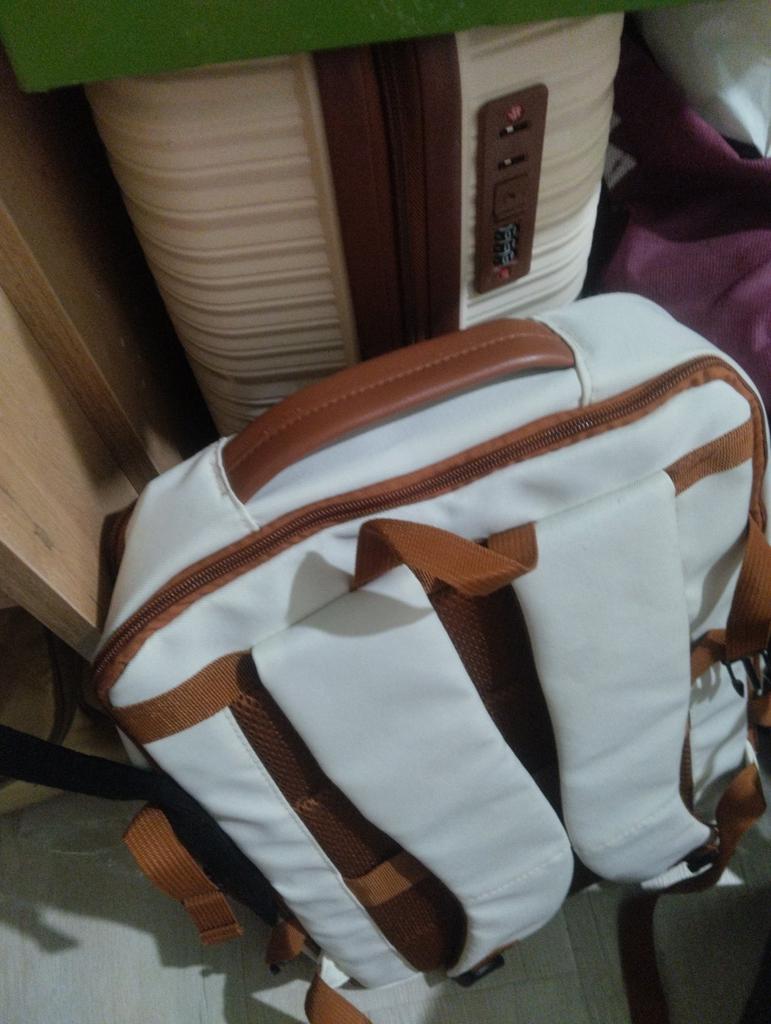 Guter Rucksack. Leider habe ich auf dem Foto nicht die richtige Farbe wiedergegeben, die Farbe ist elfenbein. Jetzt habe ich ein Set, ein identischer Rucksack mit einem Koffer
