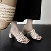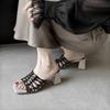 Krazing Pot Straw Weaving Handmade Summer Size 40 High Quality Slip on French Chic Chunky Heels Women Peep Toe Sandals