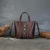 Johnature Cowhide Woven Handbag Genuine Leather Women's Bag Retro Rivet Large Capacity Shoulder Bags