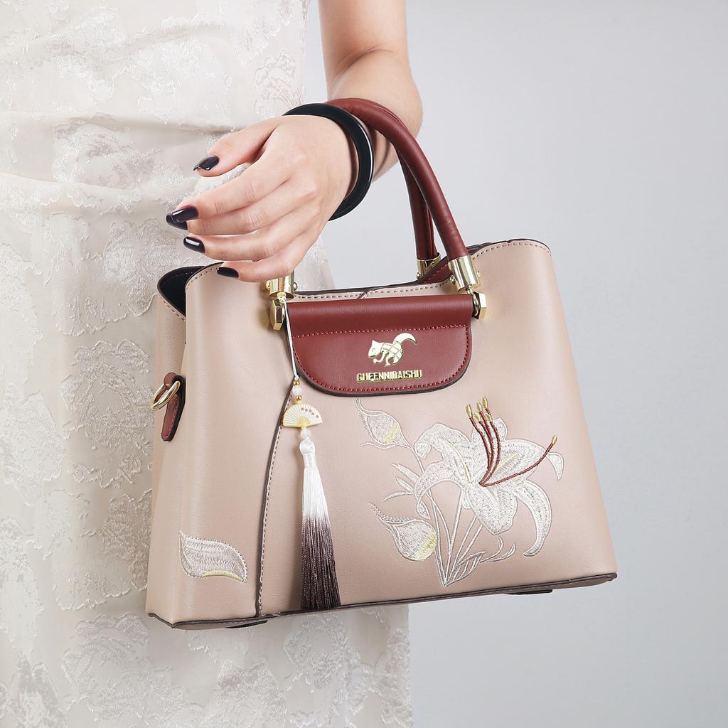 2025 neue Handtasche im chinesischen Stil mit Stickerei, zum Tragen für die Mutter mittleren Alters, Dame, Schulter, Crossbody, täglich, vielseitig