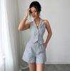 Elegantes und raffiniertes Button-down-Westen-Gestreifte Shorts-Set für Damenfrühling und -sommer