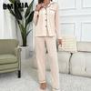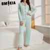 GMXIA Women's Pajamas Autumn and Winter Solid Color Cardigan Long Sleeve Loungewear Set