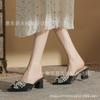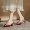 Spitze dicker Absatz einzelne Schuhe Temperament Society-Lady halbe Schleppe 2025 neu Taschenkopf Fee Strass Schleife hoher Absatz coole Slipper