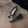 Damenschuhe mit eckiger Spitze, flachem Ausschnitt, neue Frühlings- und Herbstschuhe, temperamentvoller Strass-Schleife, dicker Absatz, temperamentvolle Damenschuhe