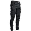 RogueWave Street Elastische Jeans Herren Denim Cargo Hose Waschung Einfarbig Mehrere Taschen Lässig Mittlere Bundhöhe Hose Slim Fit Alltagskleidung Jogger