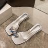 Funkelnder Schmetterling~ Transparentes Zehensandalen-Set für Damen, neu mit mittlerem Absatz, mit silbernem Lackleder, hochhackigen, coolen Slippern