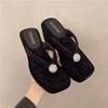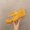 Retro vielseitige erhöhte Dicksohlen-Flip-Flops Schuhe Damen schöne Keilabsatz Strand lässig Urlaub coole Hausschuhe