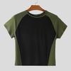 INCERUN Herren Rundhals Kurzarm Mesh Transparent Patchwork Figurbetont Cropped T-Shirts