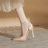 Hochhackige hohle Sandalen Damen Sommer 2025 neu Fee mit Rock spitz Mary Jane dicker Absatz Zehenschuhe