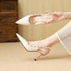 Schwarze Niet leere Sandalen Lackleder Taschenkopf klassische hohe Absätze spitzer dünner Absatz Temperament vielseitig einzelne Schuhe Damen
