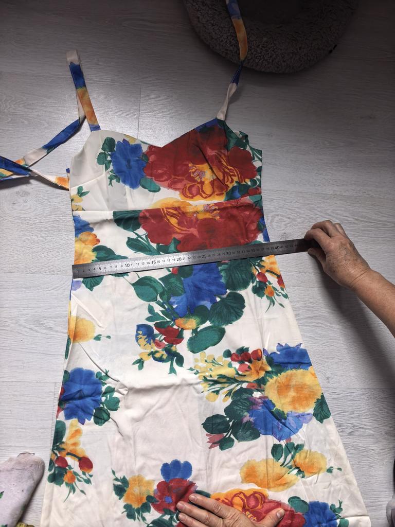 Das Kleid entspricht nicht der Größentabelle. Es gibt keine einzige Etikett mit der Größe oder der Materialqualität.