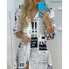 Frühling Herbst Sexy Polokragen-Shirtkleid Damen Langarm Retro-Stil Personalisiertes Druckkleid Lässiges Shirtkleid