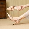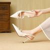 Frühling und Herbst neue spitz zulaufende Stiletto-High Heels Mode Taschenkopf Damenschuhe Temperament Schleife rotsolige Sandalen