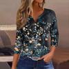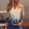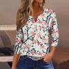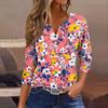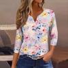 Lockeres, lässiges Oberteil mit Blumenmuster für Damen, V-Ausschnitt und Siebenviertelärmeln
