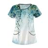Lässig bedrucktes, kurzärmliges Workwear-Oberteil für Damen mit schrägem Kragen und Doppeltaschen