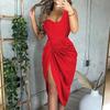 Damen-Abendkleid, einfarbig, sexy, mit Pailletten, Schlitz, Maxi, gesmokt, One-Shoulder-Abendkleid