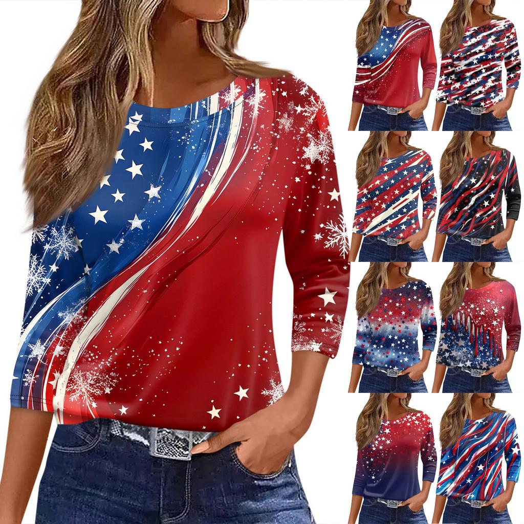 Damen T-Shirt Print 3/4 Ärmel Alltagsmode Basic Rundhals Reguläres Oberteil