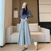 Damen Frühling und Herbst Neu Hochtaillierter Großer Schwingrock A-Linienform Dünner Langer Rock Herbst- und Winterrock
