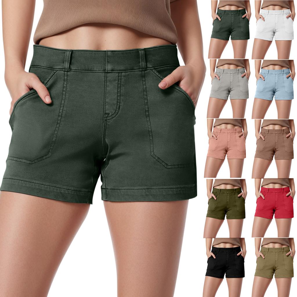 Women's Soft Stretch Twill Short Side Pockets Soft Feel No Button & No Zipper Flattering Fit