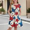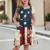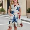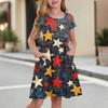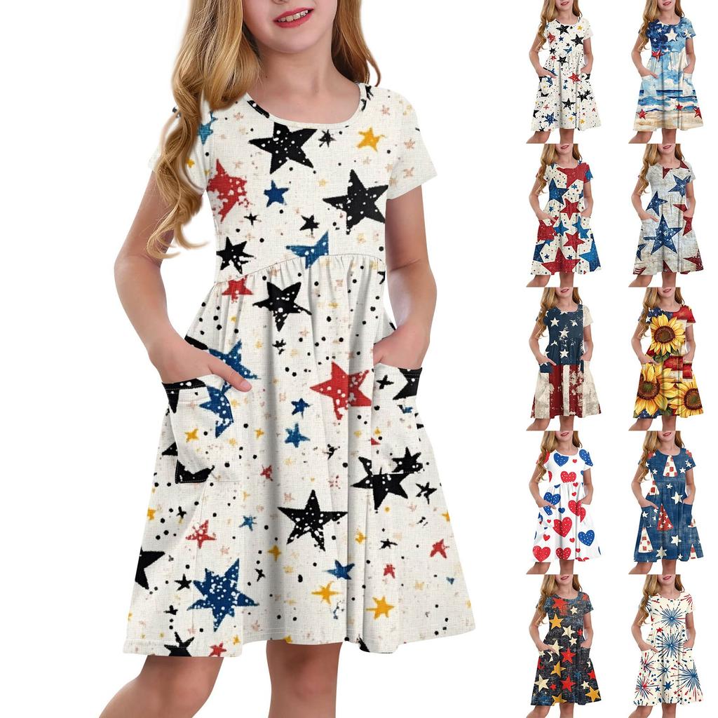 Kinder Rundhals Kurzarm Prinzessinnenkleid Modisch Und Lässig Tasche Mädchen Unabhängigkeitstag Kleid