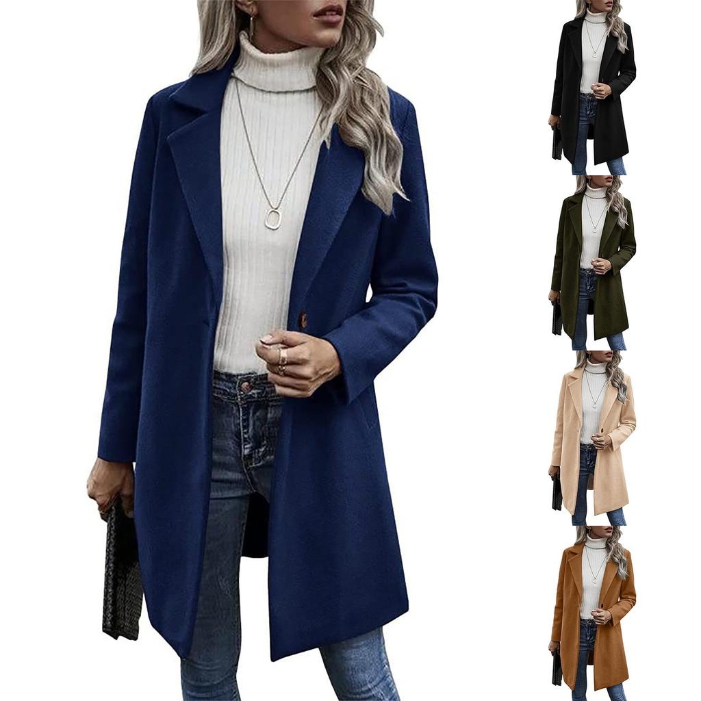 Damenmode, lässig, einfarbig, mit Taschen, locker, langärmelig, Temperament, Wollmantel