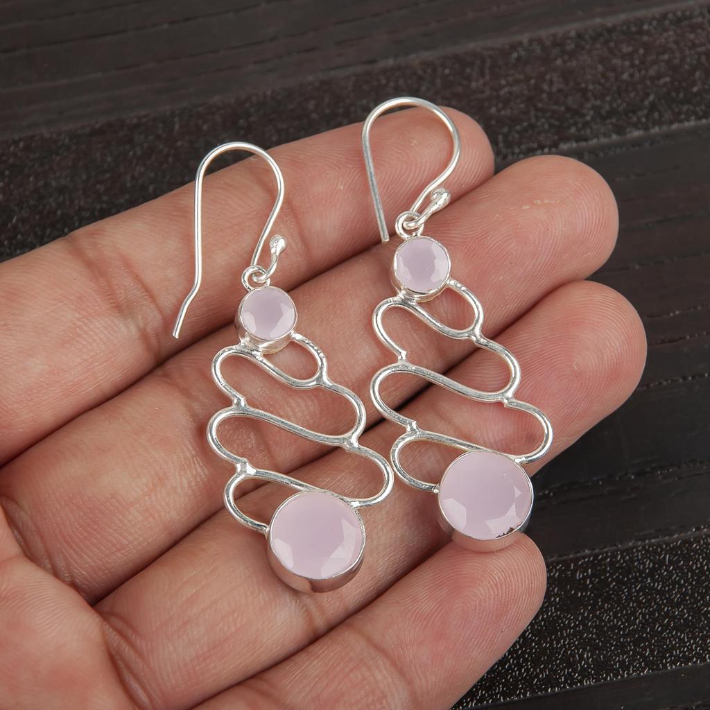 Rosenchalcedon Edelstein Ohrringe, Handgefertigter 925er Sterlingsilber Schmuck, Designer Silberohrringe Geschenk für Schwester
