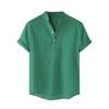 3. Bandkragen, kurze Ärmel, Button Down, einfarbig, lässiges Sommerhemd. Solide und schlicht, ein einfaches, klassisches T-Shirt aus Leinenbaumwolle.