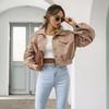 Herbst- und Winter Freizeit Revers Cordjacke Laternenärmel Einreihig Damen Kurzjacke