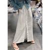 Damen Französischer Minimalistischer Weißer Leinen Midi-Rock - Elastischer Bund Slim-Fit Schlitz vorne Langer Rock für Sommer