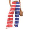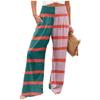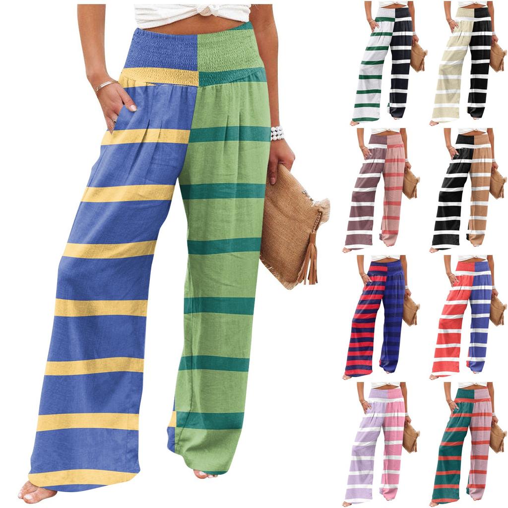 Women's Summer Elastic Waist Striped Printed Cotton And Linen Loose Trousers