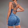 Damen Eng Anliegender Pfirsich Hüfthebender Einteiler Yogaanzug, Fitness Formender Einteiler