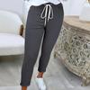 Damen Modische Einfarbige Kordelzug Elastischer Bund Tasche Freizeithose