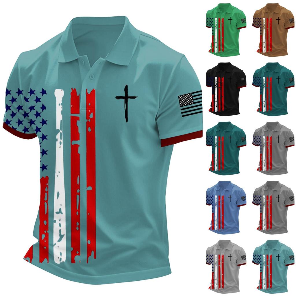 Modisches Herren-Freizeit-Oberteil mit Unabhängigkeitstag-Print am Hals und kurzen Ärmeln