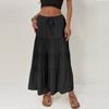 Damen Baumwollrock Hohe Taille Elastischer Bindegürtel Großer Schwingrock Europäischer Und Amerikanischer Lockerer Gespleißter Langer Rock Für Damen