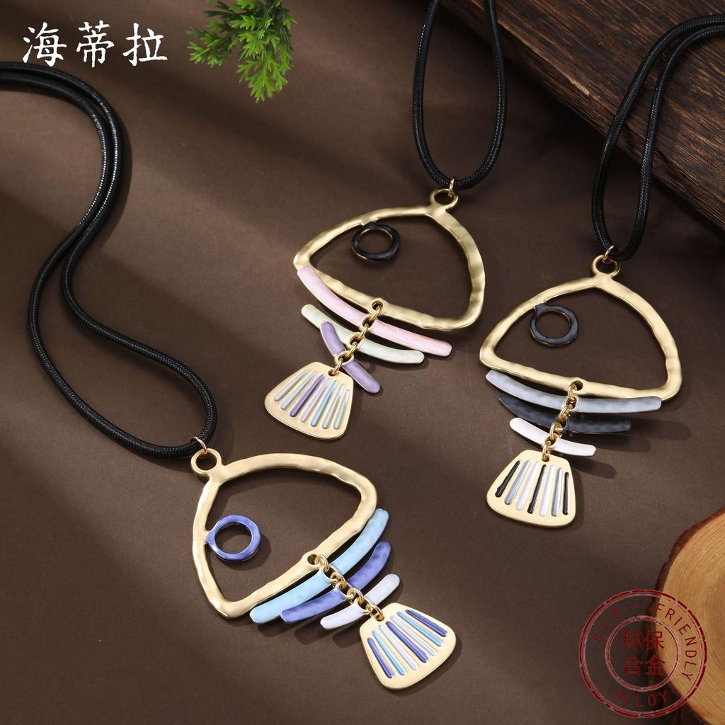 Neuer Emaille-Farb hohler Fischgräten-Lederkordel langer Anhänger Damenmode Fischgräten vielseitige lange Halskette